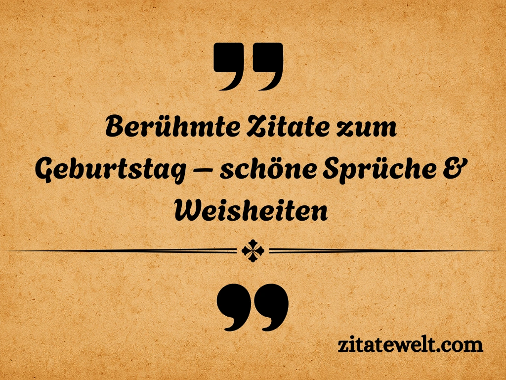 Berühmte Zitate zum Geburtstag sind bekannte oder besonders beliebte Sprüche, Weisheiten und Aussagen, die häufig in Glückwünschen verwendet werden. Sie stammen teils von Schriftstellern, Denkern oder aus der Alltagskultur und eignen sich ideal, um Geburtstagsgrüße emotional, humorvoll oder tiefgründig zu gestalten.